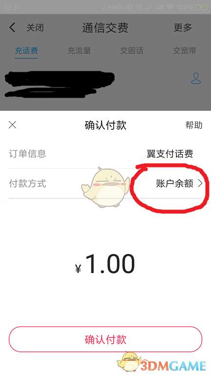 4、然后将充值付款的方式选择“账户余额”后点击“确认付款”即可。