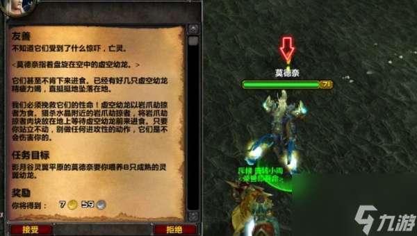 2、根据指示喂养8只灵翼幼龙,接着到达奈尔萨拉库和角色交互完成任务。