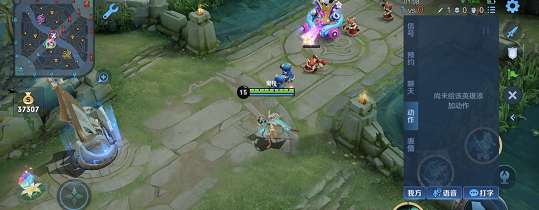 4、玩家进入对局之后,在右侧的聊天界面那里会有【动作】,玩家在这里就可以找到这个祈愿四叶草;