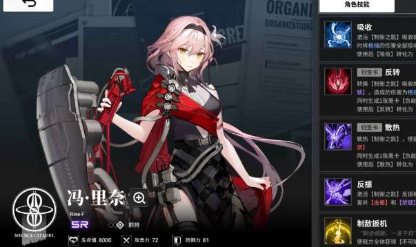 2、前排位:SR冯里奈,有格挡和反伤的优质前排,可以制造黑卡为队长技提供材料,大招群体无敌应对BOSS大技能爆发和自爆虫非常有效。