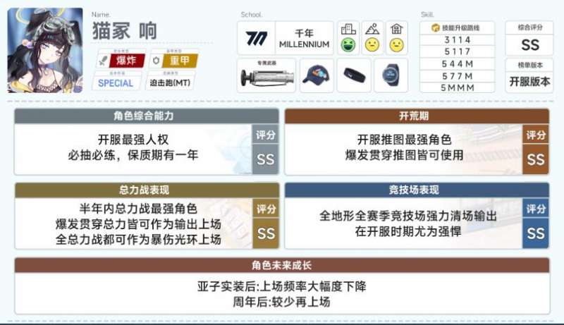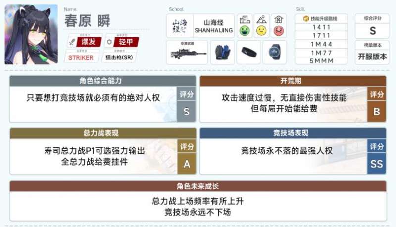 贯穿属性的输出型角色,在推图以及总力战等等玩法当中都非常的泛用,单体、群战都是非常好的。