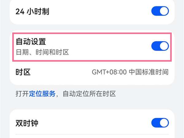 3、关闭自动设置右侧开关,点击时间进行设置即可。