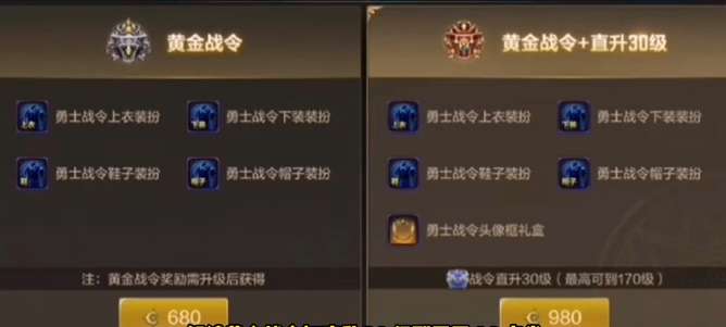 3、解锁黄金战今需要68点劵,解锁黄金战会加值直升30级则需要98点劵;