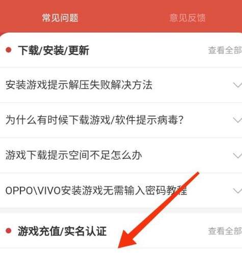 点击问题与反馈,如下图,点击游戏充值/实名认证,虫虫助手怎么解除实名认证,这样就可以了