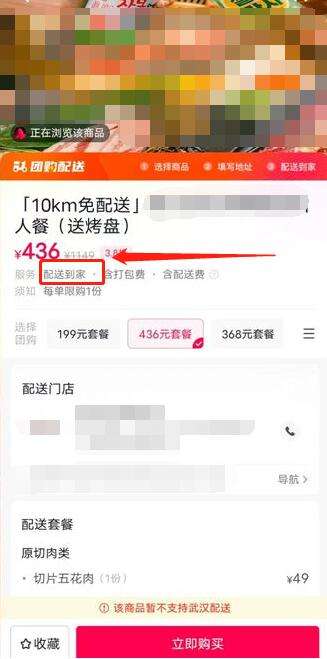 2、然后,进入商品链接后,如果支持团购配送,大家在服务介绍中可以看到配送到家字样,然后点击立即购买。