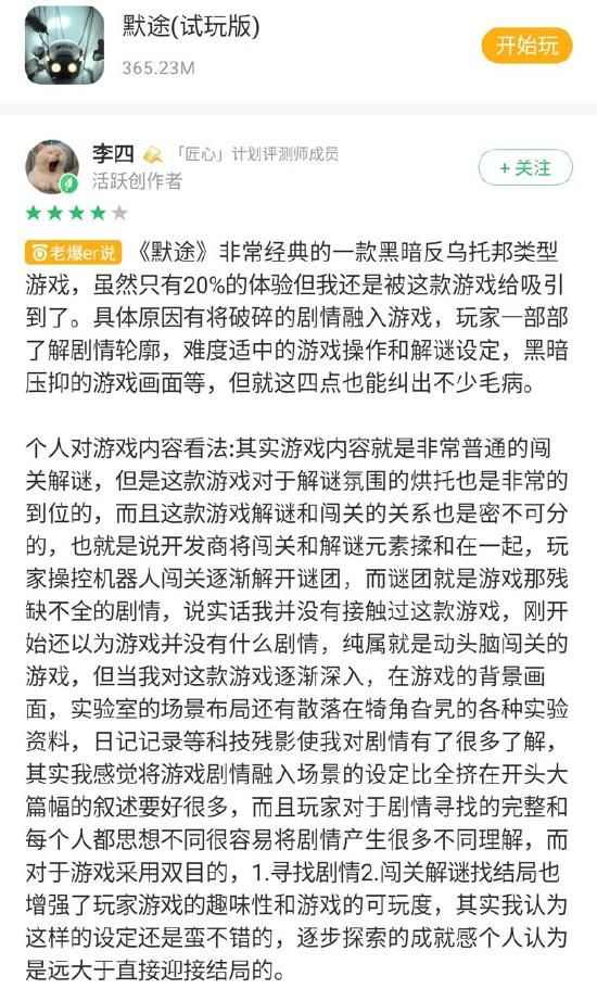 我非常喜欢他的玩法、美术,更希望它能讲一个好故事给我听。
