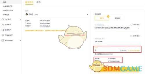 9、同时检查账户余额,也可以看到0.001BNB的手续费并未被扣除。