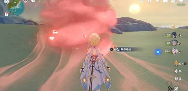 3:同时如图所示,残影暗战的挑战入口就是这种红色的一团迷雾,我们过去之后就会触发对应的交互按钮了;