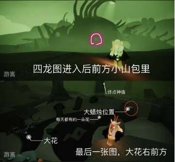 今天的蜡烛主要集中在暮土地图中,具体位置看下图!(今天有额外的蜡烛收集任务,可以收获更多的蜡烛)