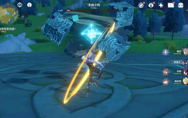 在前期能用的角色是寥寥无几的,其中主角可以通过开启其他区域的神像,来获得相对应的属性能力(璃月的岩属性、须弥的草属性、枫丹的水属性等)。在面对无相风的时候,需要获取草属性的能力,用芭芭拉,丽莎、草主、凯亚组成一个打激化反应的简易阵容,利用草种子来对无相风造成伤害。