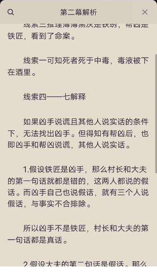 3.大夫和村长都没有说谎。那剩下的二人肯定一人是凶手,一人是帮凶。前面推断出,凶手不是铁匠,那么他只能是知情不报的帮凶,所以是瞎子下了毒。