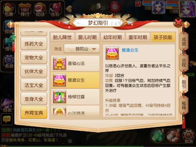 新版孩子系统中我们可以完成一系列任务来获得。首先来到大唐驿站,进入家园后和夫人对话。记者在家附近找六个小孩,然后依次对话,和这6个小孩对话结束后,就可以按照顺序找到对应的书籍进行学习。完成学习后回答夫人的问题,这个问题是比较随机的,不过都需要用到之前学习的东西。回答成功之后,就会获得一个金柳露,将金柳露给孩子使用,就可以获得孩子了。