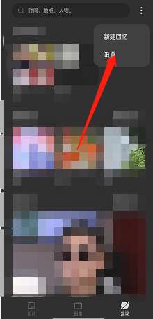 1、打开相册,点击上方的设置。
