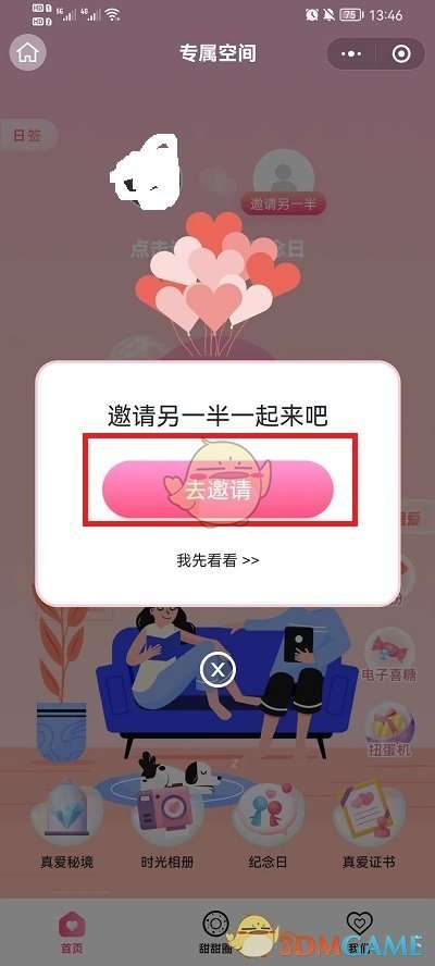 2、其中很多功能是只有邀请了另一半才能进行解锁的,将会见证两位用户的点点滴滴,并且会有各种纪念日等功能,帮助用户记录每个节日,拥有甜蜜的恋爱日常记录。