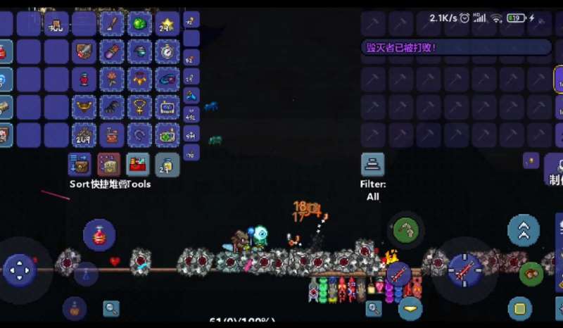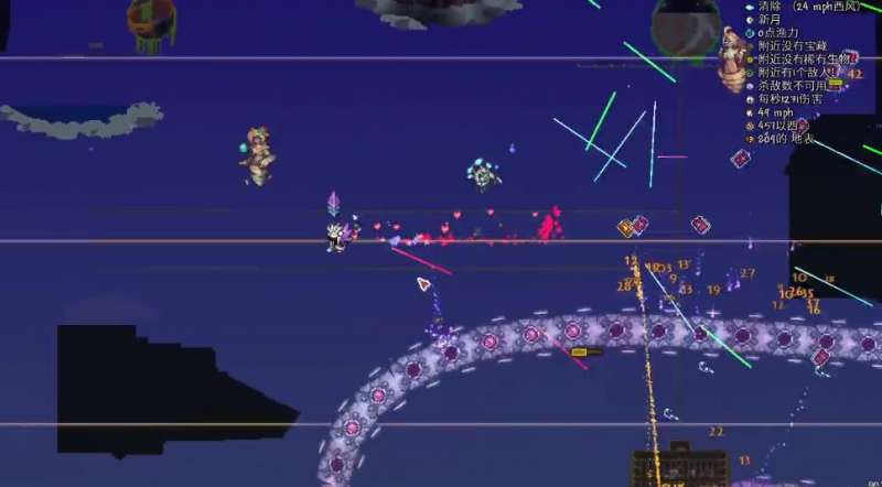 在和它战斗的时候,玩家需要远离自己居住的地方,因为该boss的攻击非常的密集,激光会到处乱射,有可能杀死大量的npc。其次我们需要准备防御力比较高的装备,能够帮助我们抵御该boss的激光伤害。堆叠的过高甚至可以不用躲避,直接站着硬吃伤害打都行。机械毁灭者非常长,大部分时间都是在空中游动的,玩家比较容易找到躲避其撞击的空间。武器可以选择恶魔镰刀、魔法竖琴、冰镰刀、毒牙法杖、黄水书等具有多段穿透效果的。