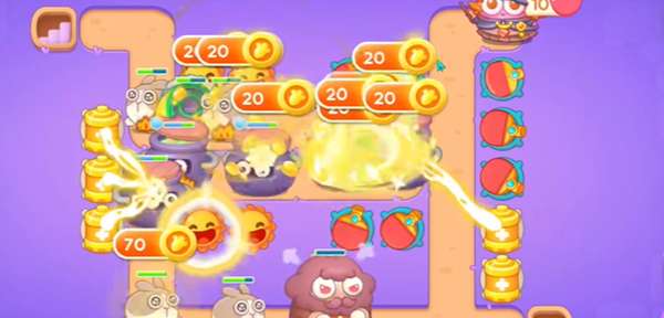 5、最后玩家继续补充炮台和升级,就能够轻松通关。