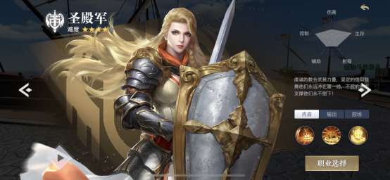 圣殿军技能有【肉盾】、【输出】和【控场】三套可选,可应对各种环境下的战斗。例如在PVE打本时,组队状态下,选【肉盾】系列的技能,使用嘲讽敌人吸引火力,同时开启【近卫姿态】来降低自身承受的伤害。单人状态下,选【输出】系列技能组合,由于自身坦克的定位,抗伤自然不在话下。再搭配【输出】系列的技能,也可以打出不俗的伤害。而在PVP对战里,自然选【控场】系列技能。【圣力结界】的沉默与晕眩,搭配【圣力澎湃】和【无畏冲锋】技能,打伤害的同时,降低治疗效果,将对方的奶妈的作用将至最低。