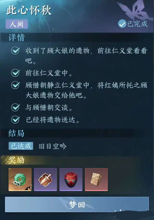 以上就是10D大评测整理带来的《逆水寒手游》此心怀秋人间任务完成攻略,更多相关游戏攻略,请关注十大评测网!