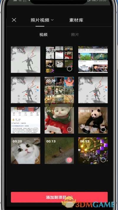 2、勾选一段视频点击添加到项目