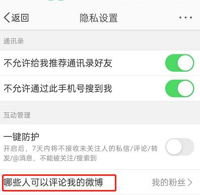 3、接着,点击哪些人可以评论我的微博,去选择范围,即可隐藏其他人的评论了。