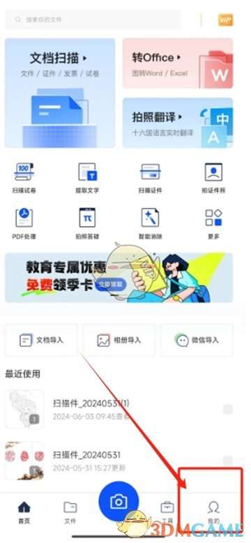 1、打开夸克扫描王app,点击屏幕右下角的“我的”页面。