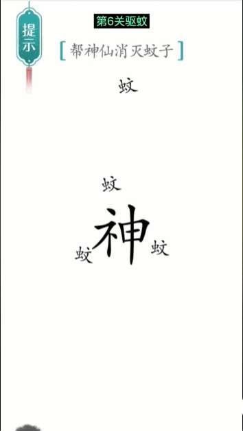 以上就是十大评测小编整理带来的抖音小游戏《汉字魔法》第6关驱蚊通关攻略,更多关卡攻略,请点击关注十大评测网,小编将持续为您更新!