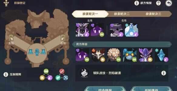 敌袭特点:左右两线敌人分布均匀,且每个轮次敌人的元素属性变化较大。