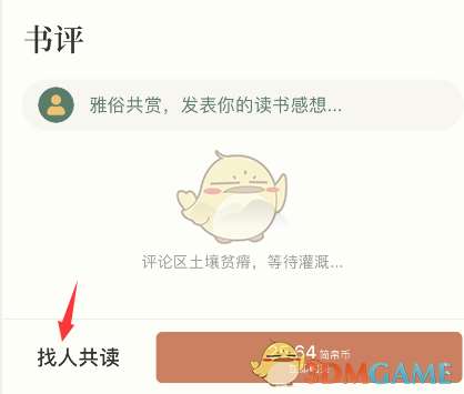 藏书馆为用户提供了共读功能,如果我们觉得一个人看书没劲,或者想要邀请别的好友来一起看书的话,就可以邀请他们来共读。打开藏书馆app后,点击右下角的发现,搜索找到你想看的书籍打开,进入书本后,点击左下角的找人共读即可。