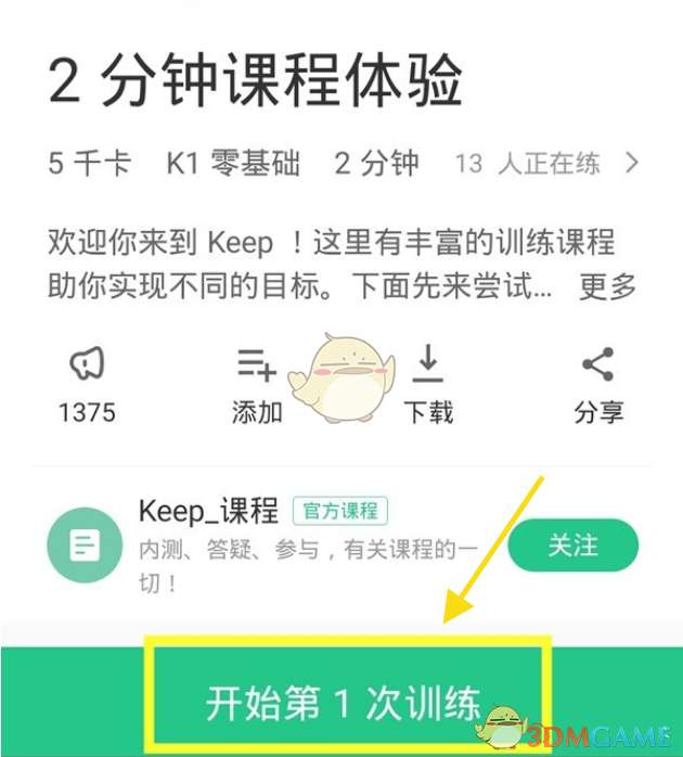 1、点击一个课程先开始进行训练。