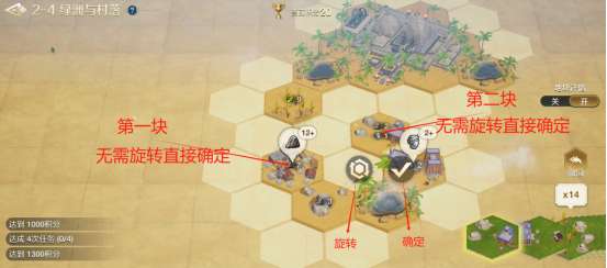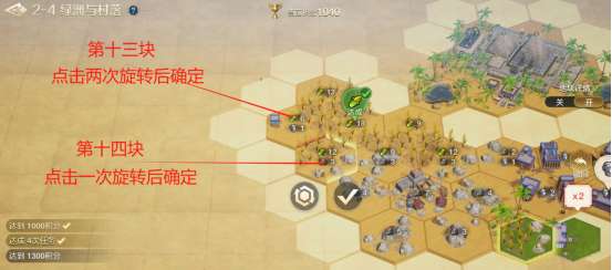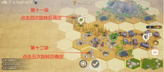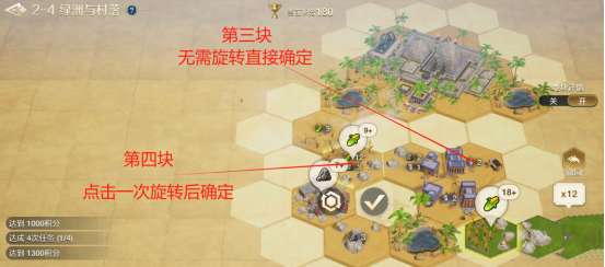 文明创想地块搭配(2-4)绿洲与村落详细步骤如下
