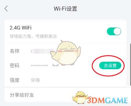3、进入wifi设置点击密码右侧的去设置进入;