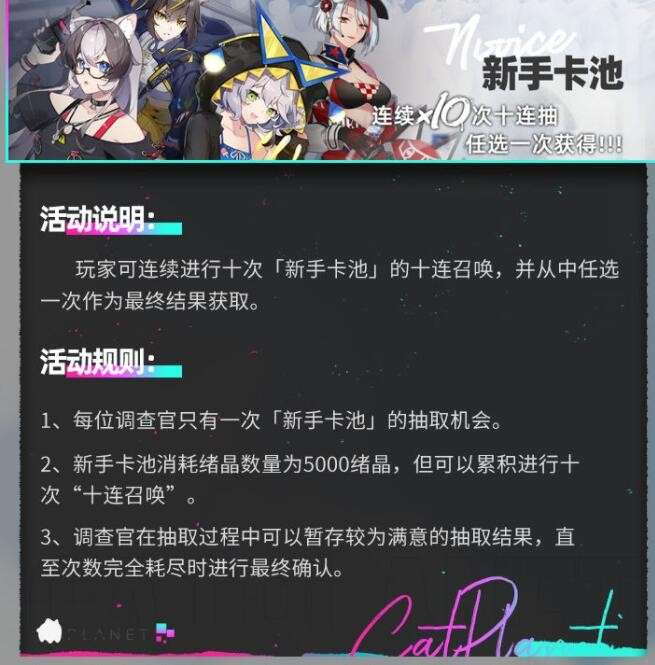 1、每位调查官只有一次「新手卡池」的抽取机会。