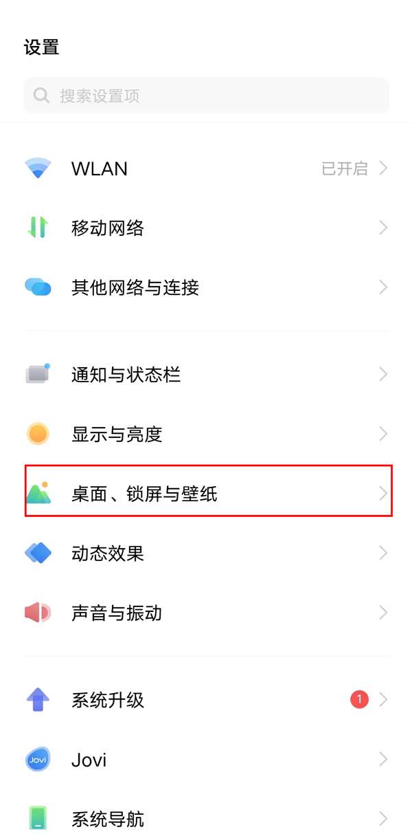 1、开启手机设置,点击【桌面、锁屏与壁纸】。