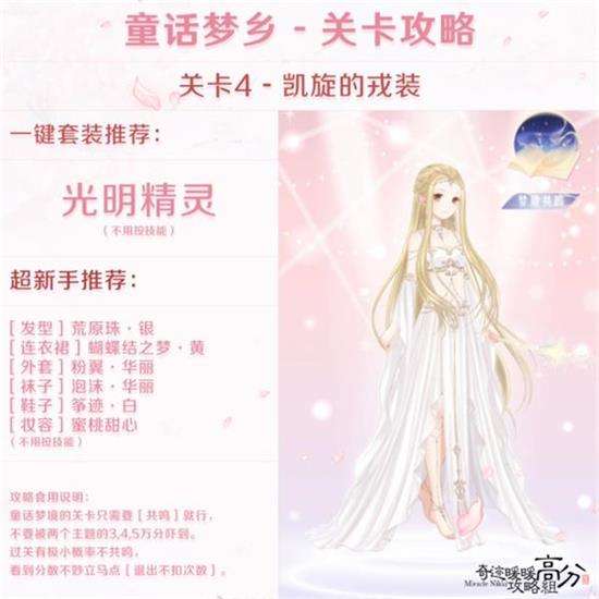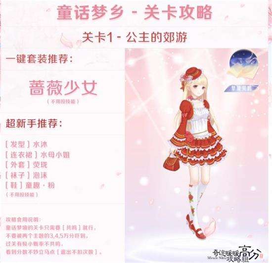 1.童话梦乡第一期搭配如下,每个关卡只需要穿1套就可以了。
