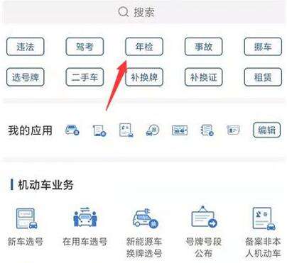 2、然后,在更多页面的最上方可以看到【年检】标签,点击进入到相关界面。