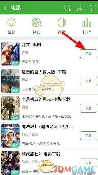 2、点击“电影选项”,就可以进入电影下载页面了,如下图: