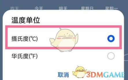 3、将温度单位选择为摄氏度即可。