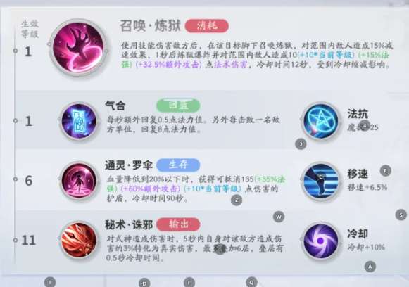 团战时我们也可以先利用敌方前排叠灵符,再利用二技能变更前后鬼的位置使其输出敌方后排。这一点,与鬼使黑利用敌方前排刷魂殇然后冲敌方后排类似。