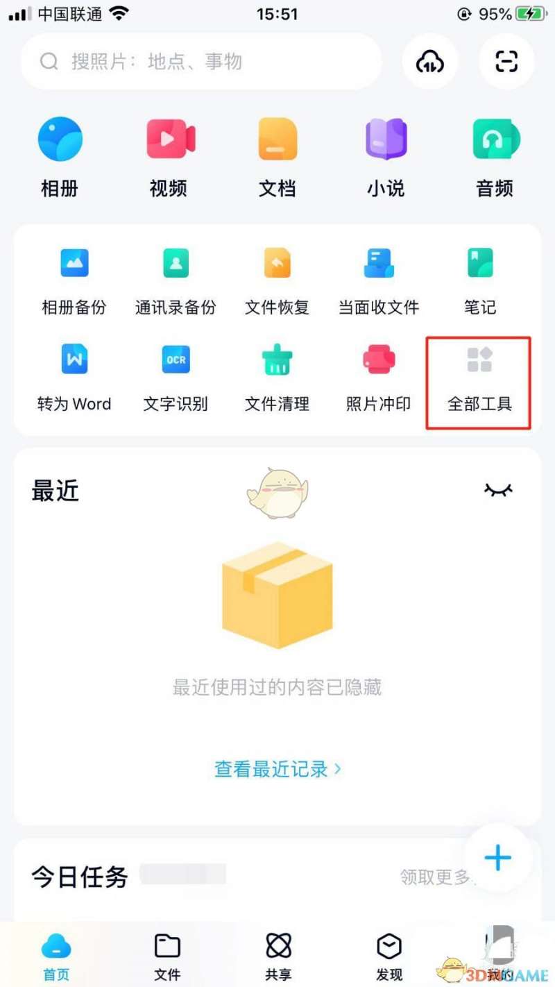 1、在“百度网盘”主界面,点击“全部工具”图标。