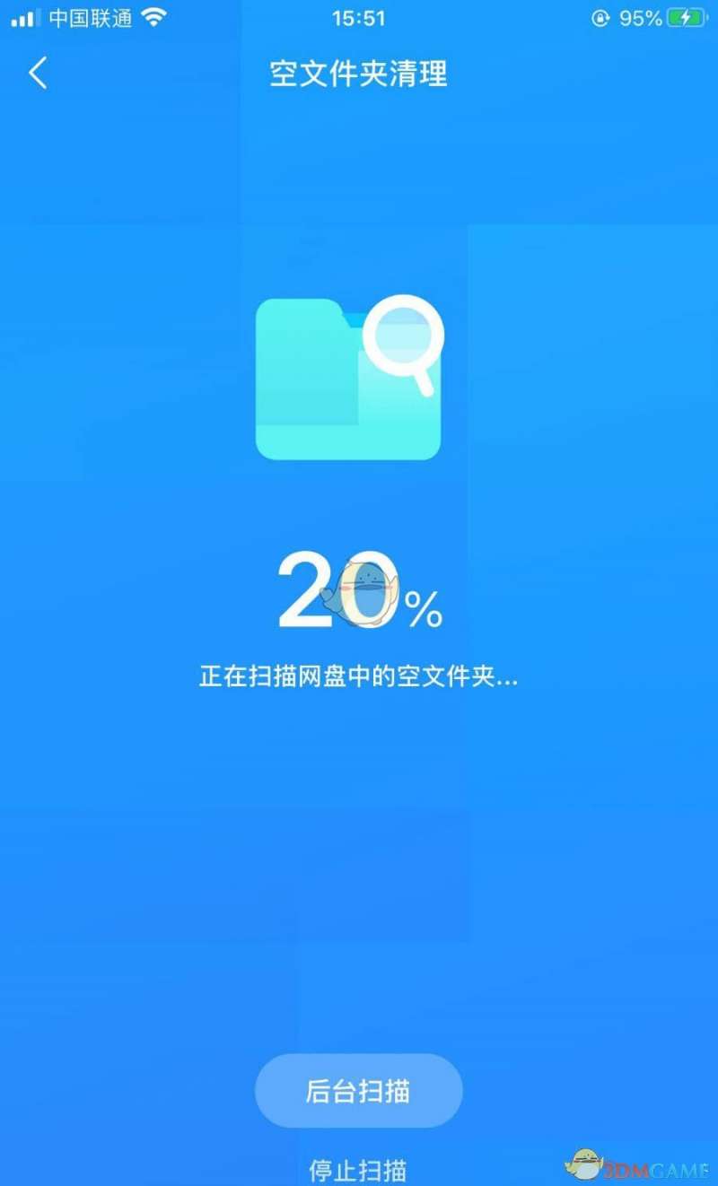 4、在“空文件夹清理”页面中,等待扫描过程完成,扫描时间长短视网盘文件数量决定。