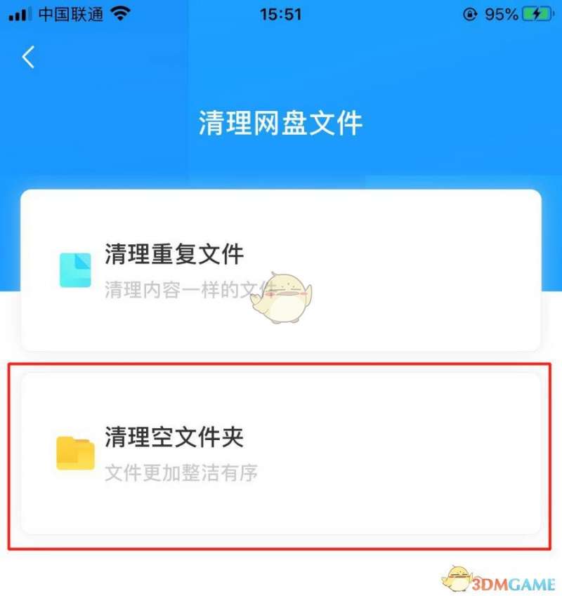 3、在“清理网盘文件”界面中,选择“清理空文件夹”选项。