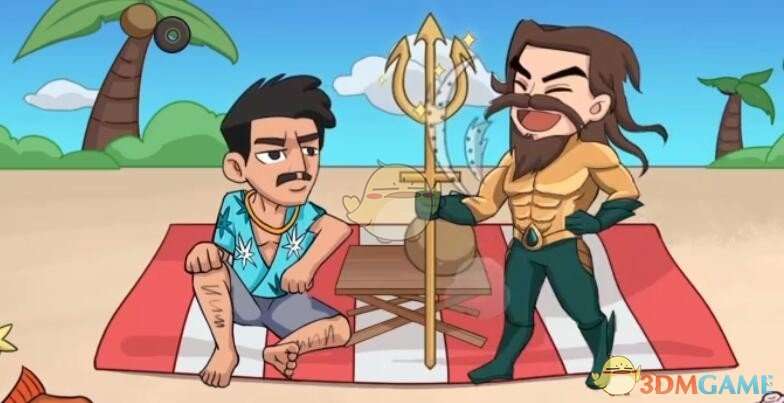 3、同时找到椰子树上的两个胡子,把胡子贴上变成海王就成功了。