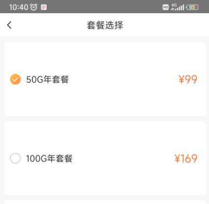 在打开的套餐选择界面,选择一款云盘套餐,然后完成支付即可。