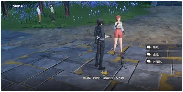 任务自动接取,位于祈池村附近路口,带回给小橘,一样选三选一起名。