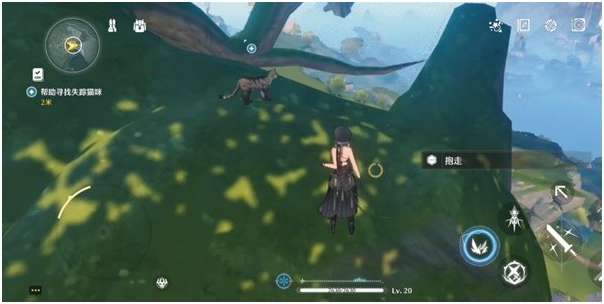 帮助小橘救回失踪猫咪鲁鲁,它在桃树顶部,利用钩索疾跑上去。