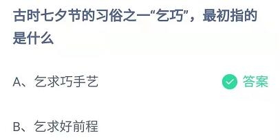 问题:古时七夕节的习俗之一乞巧,最初指的是什么?