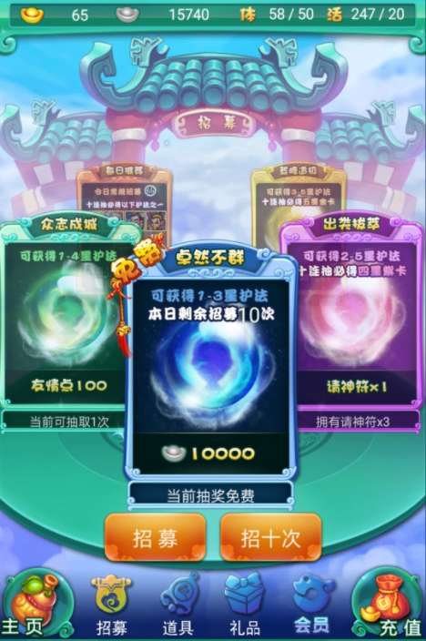 天狐作为一名拥有强大力量和独特技能的角色,成为了不少玩家梦寐以求的目标。天狐不仅外观华丽,更拥有极其强大的法术攻击力和辅助能力,可以在游戏中的团队战斗中发挥巨大的作用。游戏提供了一个角色召唤系统,玩家可以通过消耗游戏中的召唤卷轴(分为普通和高级两种)来随机获得角色。