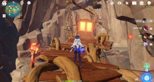 6.在完成第三天的主线任务后就可以操纵山体,在移动山体之后,会发现右边山下面会出现一个洞就可以了,带上提瓦特第二火系弓箭手安博进入其中,要打两次火炬,水位才会下降完,对面火炬点燃,要把后面的门打开,里面还有一个火把,(那个门要打开,后面开那三个宝箱有用)点完,就可以去拿了。