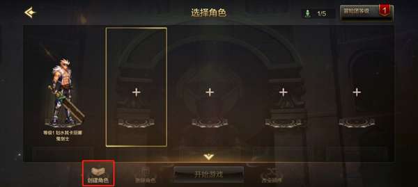 7、如果还想玩其他角色,也可以选择空角色位置,点击左下角的“创建角色”另建一位角色;