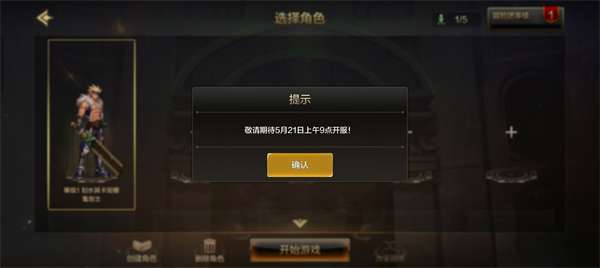 8、在5月21日上午9点整,选择你创建的任意角色,点击“开始游戏”即可正式开始游戏。